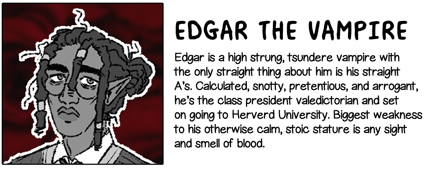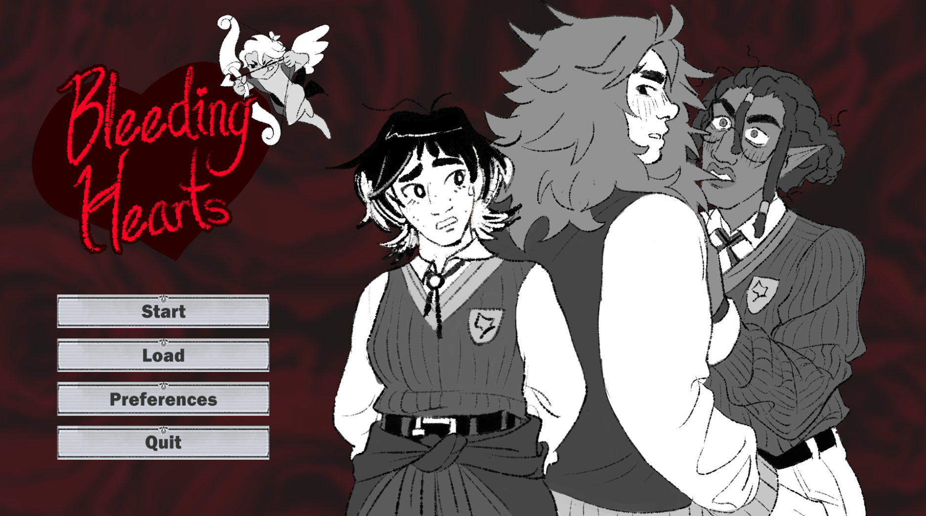 Bleeding Hearts is both an urban fantasy LGBTQ+ 2D visual novel and a Twilight parody, created and developed by Team Cauldron. Navigate as Stella, Haunt Academy’s sole human student, where she must figure out how to make Edgar and Jensen fall in love with each other instead of her.
