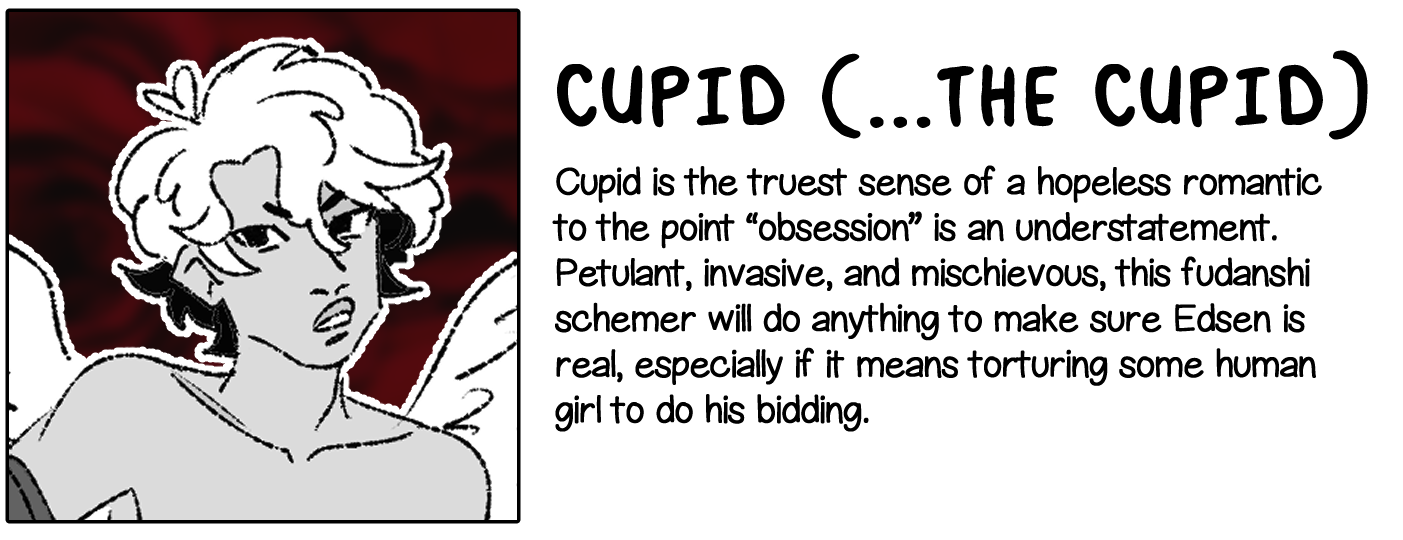 Caught in an accidental love triangle by Cupid, Stella has to make the academy’s biggest rivals, Edgar and Jensen, confess their love to each other by the end of Valentine’s Day.